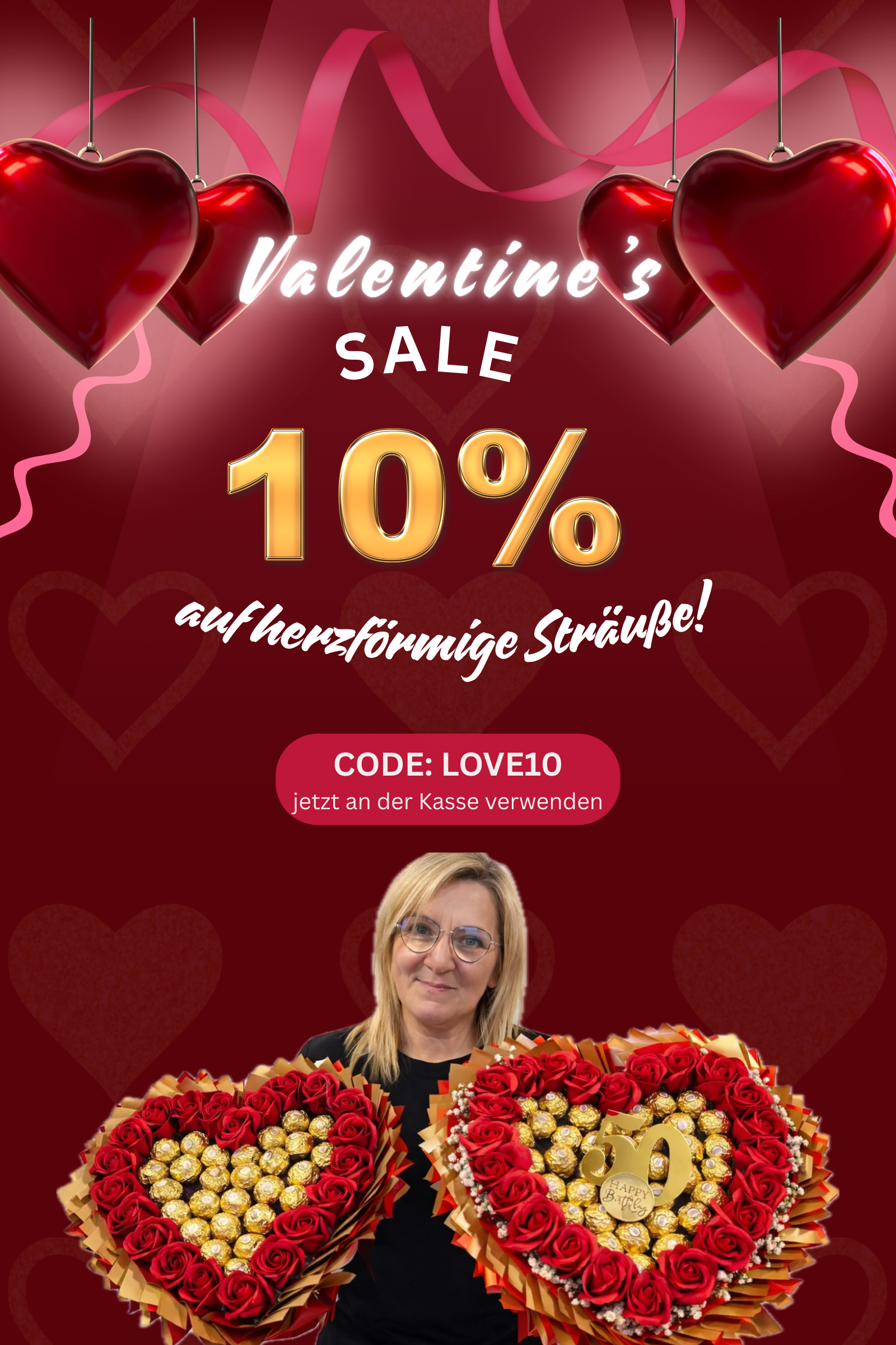 Herzförmiger Strauß mit Seifenrosen und Raffaelo